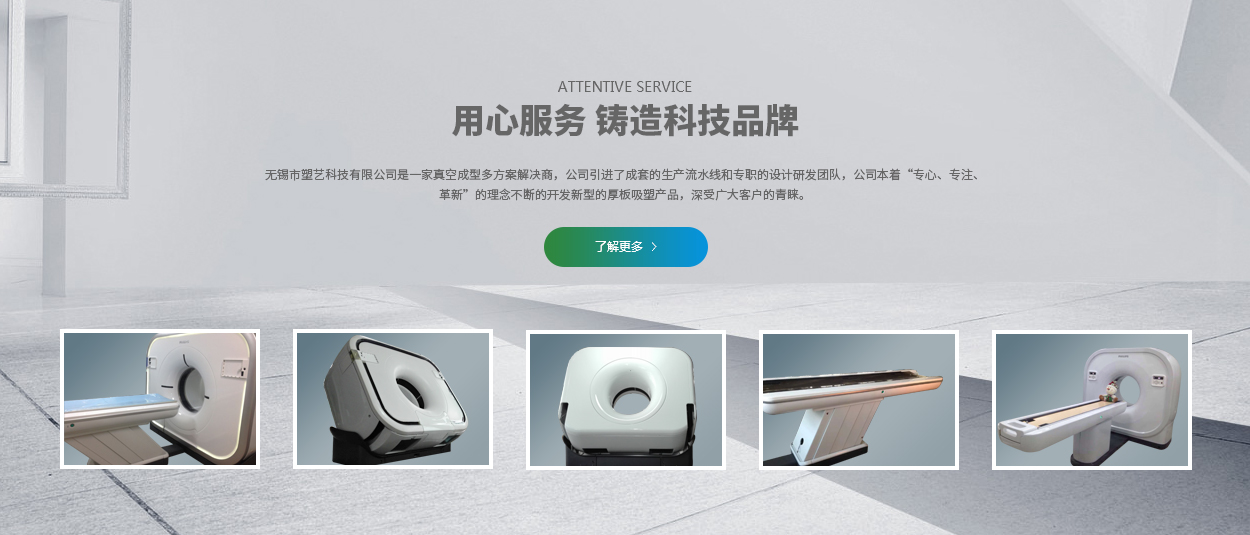 無錫塑藝科技有限公司成立于2006年。是一家集研發(fā)、生產(chǎn)、經(jīng)銷為一體的真空成型解決方案有限公司,主要生產(chǎn)厚板吸塑制品、薄片吸塑制品、滾塑制品、機(jī)加工制品、模具設(shè)計制作以及各種環(huán)保包裝材料。